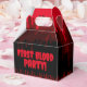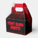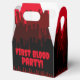 Another spooky first period gift box by JessicaAmber - ask about custom orders! This paper favor box is perfect for your child or teenage daughter's first period. Features a pattern of dripping blood in shades of red, on a black background. The front has the slogan 'First Blood Party!', which you can change as needed. 🩸 Created 26 October 2023. For more teen gifts, visit my store Zazzle.com/JessicaAmberArtist 🩸 For special orders, message me on Zazzle