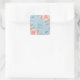 These first bloom floral baby shower envelope seals are perfect for a spring baby shower. The modern design features pink and orange watercolor flowers on a light blue background. Personalize the label with the name of the mom-to-be.