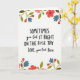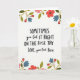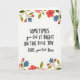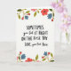 This card features a centered message on a bright white background, designed to feel like a close, affectionate note between family members ❤️. The main text sits in the middle, mixing large uppercase words with smoother, flowing letterforms for contrast. The phrase reads, “SOMETIMES you Get IT RIGHT ON THE First TRY LOVE, your First Born,” with “SOMETIMES” and parts of “IT RIGHT” standing out in larger, darker lettering. “LOVE, your First Born” appears beneath the main line, slightly smaller and placed like a sign-off, keeping the tone tender and a little teasing. Soft floral clusters frame the top and bottom edges, adding a gentle, caring atmosphere 🌼. The blossoms are shaded in coral, muted red, and blush pink, with sage-green leaves and a few indigo-blue accents tucked between petals. The top border shows scattered blooms and leaves, while the bottom border mirrors it with a fuller spray of flowers and greenery.