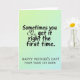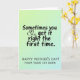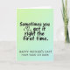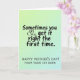 Designed with a gentle gradient backdrop that shifts from pale lime at the top to cool aquamarine at the bottom, this card keeps the mood soft and affectionate ❤️. A tall, centered message runs vertically through the middle, split into two parts for an easy visual flow. In the upper-middle area, the line “Sometimes you get it right the first time” appears in smooth, flowing black lettering, like relaxed handwriting. Where an ampersand would normally sit, a small heart icon takes its place, adding a quiet hint of closeness and a tender, inside-joke feel between parent and child. Below that, a simpler all-caps line reads “HAPPY MOTHER’S DAY! FROM YOUR 1ST BORN,” also in black, sitting neatly under the first phrase. The contrast between the flowing top line and the straightforward lower line creates a sweet balance, like a warm look exchanged across the room 🌼. The heart symbol is small, dark, and centered within the top phrase, standing out against the light pastel background.