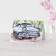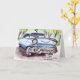 A humorous take on your child's want for his or her first car. Hand painted watercolor of a 57 chevy with woodlands in the background.