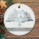 Celebrate this First Christmas for baby with this cute, baby, arctic fox with silver, snow covered trees in background. Silver border, and banner to personalize with templates created for you.