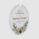 First Christmas as a Business Owner Personalized with Name and Year Round Acrylic Keepsake Ornament Gift... A delicate bouquet of pink roses, pine cones, and Christmas botanicals decorates the rose gold metallic circle framing the text of your holiday themed ornament gift for new business owners. The example wording on this keepsake ornament reads "First Christmas as a Business Owner" in elegant serif typography followed by the person's name and the current year. All text can be easily revised on the personalization template.