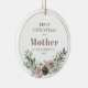 First Christmas as a Mother Personalized with Name and Year Round Ceramic Keepsake Ornament Gift... A sweet bouquet of pink roses, pine cones, and Christmas botanicals decorates the rose gold metallic circle framing the text of your holiday themed ornament. The example wording on this keepsake ceramic ornament reads "First Christmas as a Mother" in elegant serif typography followed by the new mom's name and the current year. All text can be easily revised on the personalization template.