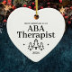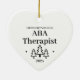First Christmas as an Aba therapist heart ornament for a new job in Applied Behavior Analysis working with autism and more. Elegant porcelain ceramic holiday ornaments in white with black lettering. Featuring Christmas trees and stars.