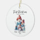 Featuring a trio of happy snowmen representing each member of your family, this ornament captures the warmth and joy of your first Christmas together. The delightful snowmen are dressed in cozy scarves and hats, standing together with smiles that radiate love and happiness. The ornament is personalized with your family’s name and the year, making it a treasured keepsake for years to come.