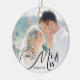 Create your own custom personalized wedding photo keepsake ornament featuring one or two photos (one on each side), the title FIRST CHRISTMAS AS MR AND MRS in an elegant script typography with your last name and year in your choice of text colors (shown in black against a white ombre photo overlay) to coordinate with your picture(s). The design is duplicated on both sides. NOTE that all ornaments styles available on the ordering page may not offer a two-sided design. ASSISTANCE: For help with design modification or personalization, color change, resizing or transferring the design to another product, contact the designer BEFORE ORDERING via the Zazzle Chat MESSAGE tab below or email makeitaboutyoustore@gmail.com.