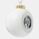 First Christmas as Mr and Mrs newlyweds personalized photo Ceramic Ball Christmas Ornament. It displays your favorite wedding photos on the front in round shape, sagen green hearts and curved text.