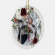 Cherish your first memories together with this lovely Christmas ornament. The elegant design features your names in a modern script font with framed in a gold geometric wreath with watercolor florals and eucalyptus and pine greenery. The back reverses to your favorite photo. This ornament will be a keepsake to treasure forever.