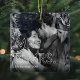 Elegant double sided christmas couple ornament featuring 2 photos either side, the saying "mr. & mrs." in a modern white outline font, your family name, and the year.