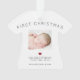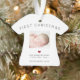 Simple minimal personalized baby's First Christmas tree ornament with 2 custom photos, name and birth stats.