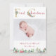 Add your child's photo to this First Christmas Announcement Card to create a lasting keepsake for family and friends. The front side includes your child's picture, with text: First Christmas on top, and text: Baby's Name and Birthday on the bottom, trimmed in festive florals. The reverse includes the text: Merry Christmas, along with text: Your Family Name, and Family Members names. To personalize, simply insert your favorite image, click: FIT to center. Next insert your text into our easy template, replacing the sample text.