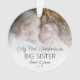 First Christmas Big Sister Names Photo Overlay. Celebrating this special time and great keepsake for years to come. Simply replace the sample image with your own favorite which is also on the back and will change simultaneously. Easily personalise the text.