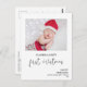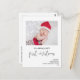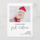 Modern single photo on the front first Christmas photo postcard featuring a modern monoline calligraphy word first Christmas and small Christmas tree drawing. Your Christmas greeting appears on the back. This modern first Christmas photo postcard is a sweet way to send family and friends a Christmas greeting with your baby's photo.