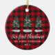 First Christmas Calligraphy Pines Plaid PHOTO BACK Ceramic Ornament