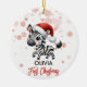 Personalized Christian ornament, cute Zebra baby with Christmas hat, and bible quote on the back. Luke 2:11 "For unto you is born this day in the city of David a Savior, who is Christ the Lord."