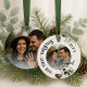 Celebrate love and new beginnings with this personalized "Our First Christmas Engaged" photo ornament. Designed in a timeless round ceramic style, this keepsake features elegant calligraphy, festive winter greenery, pinecones, and white florals. The front displays a custom engagement photo with the phrase “Our First Christmas Engaged” with the year, while the back offers space for a second photo and the couple’s names, making it a truly meaningful and unique holiday treasure. Perfect as an engagement gift, Christmas proposal keepsake, or holiday décor for couples, this ornament is a heartfelt way to commemorate your engagement and the start of forever.