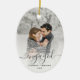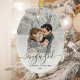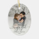 First Christmas Engaged Custom Photo Gray Script Ceramic Ornament