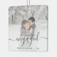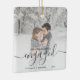 First Christmas Engaged Custom Photo Gray Script Ceramic Ornament