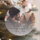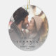 First Christmas Engaged Custom Photo Gray Script Ceramic Ornament
