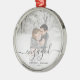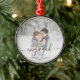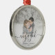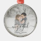 First Christmas Engaged Custom Photo Gray Script Metal Ornament
