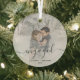 First Christmas Engaged Custom Photo Green Script Glass Ornament