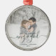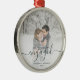 First Christmas Engaged Custom Photo Green Script Metal Ornament
