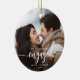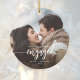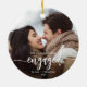 First Christmas Engaged Custom Photo White Script Ceramic Ornament