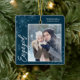 First Christmas Engaged Handwriting Script Blue Ceramic Ornament