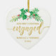 First Christmas Engaged Holly Gold Script Photo Ceramic Ornament