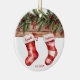 Celebrate your special milestone with our "First Christmas Engaged" custom ceramic ornament! This beautifully designed keepsake features two illustrated Christmas stockings, each with customizable fields for you and your partner's names, making it a perfect memento of your first holiday season engaged. The back of the ornament offers a space to upload your favorite photo, surrounded by the festive text, "Our First Christmas Engaged."