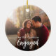 All text elements are fully customizable, allowing you to add a personal touch and make this ornament truly yours. A perfect gift for engaged couples, newlyweds, or a lovely addition to your own holiday decor, this ornament captures the joy of your first engaged Christmas together.