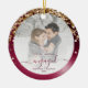 First Christmas Engaged Photo Burgundy Gold Ceramic Ornament
