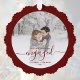 First Christmas Engaged Photo Burgundy Script Ornament Card