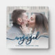 First Christmas Engaged Photo Metallic Blue Script Plaque