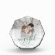 Celebrate your engagement with this beautiful modern keepsake photo block. The pine green text reads "Our first Christmas engaged," with the word "engaged" in elegant handwriting script with flourishes before and after. Replace the sample image with your favorite photo, and add your names and the year. A white gradient filter helps make the text pop.