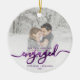 First Christmas Engaged Photo Purple Foil Script Ceramic Ornament