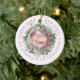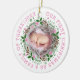 First Christmas family of three wreath pink photo Ceramic Ornament