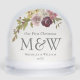 Celebrate your first Christmas as an engaged couple with this elegant, boho floral photo snow globe. The wreath has burgundy, pink and warm orange flowers with green foliage accents. Easy to customize with your names and year on the front and your photo on the back.