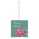 Here's a beautiful keepsake to mark a couple's First Christmas together. It features your own photograph placed inside a stunning red and green floral wreath frame. The photograph appears on two sides of the ornament, and you can make it the same, or use a different photo for the 2nd time. The other sides have matching floral images, a floral candle, and more text fields for you to customize. Everything is placed on a matching darker teal green background. Gorgeous!