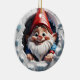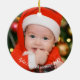 This adorable ornament is the perfect way to commemorate a baby's first Christmas. Featuring a cute, smiling Gnome peeking through a cracked ice design, this charming keepsake can be personalized with text and a photo of baby on the back. It's a beautiful, memorable gift for new parents and a sweet addition to any Christmas tree.