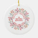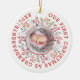 This delightful ceramic ornament is the perfect way to commemorate the family's first Christmas as grandparents! Featuring a festive design with a photo of the baby in a frame made of berries and leaves, it is decorated with the text 'OUR FIRST CHRISTMAS AS GRANDPARENTS. 20XX' in a beautiful red hue. On the back of the ornament, the same floral frame and your text will be included, creating a perfect keepsake to hang on your tree for years to come. This unique and charming ornament will be a meaningful reminder of the joy of your first Christmas as grandparents.