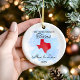 A Personalized Texas State Ornament used for Christmas occasion to celebrate the first Christmas living together as a either as a couple, family or newlyweds in the United States of America.