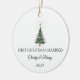 Featuring a festive Christmas tree design and customizable names, year, and photo — this ornament makes the perfect keepsake to remember your special first holiday together.