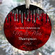 First Christmas married black red glitter drips Ceramic Ornament. Sparkly ,stylish and elegant beautiful inexpensive gift for couples celebrating their marriage. It’s an elegant wedding anniversary keepsake that can be personalized with your special anniversary information.