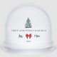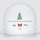 Celebrate your First Christmas Married with our charming couple's snow globe! It features a beautiful snow-covered Christmas tree on a crisp white background, adorned with a stylish red bow for a coquette touch. The bold black text and elegant script personalize it with the couple's names and wedding date, making it the perfect keepsake to commemorate their first Christmas together. A timeless and meaningful gift for newlyweds!