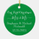 Celebrate a beautiful new beginning with this First Christmas Mr & Mrs personalized ceramic ornament. This classic green and red ornament is perfect for newlyweds to commemorate their first holiday together as a married couple. A cherished keepsake and a wonderful gift from an ornaments designer for weddings, anniversaries, or holiday newlywed gifts.