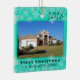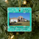 First Christmas ornament for a new home. Customize both sides of this pretty turquoise tree ornament with photo of the house, year date and “first Christmas in our new home” text on the front. On the back, fill the text template with the address and date established to create a lovely keepsake.