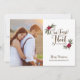 Celebrate your first Christmas as newlyweds- a Christmas card with room to share a portrait wedding photo on the front and a full bleed landscape photo on the back. And it doubles as a marriage announcement. These Christmas Cards features pine boughs and flowers to accent your winter wedding pictures.