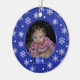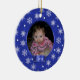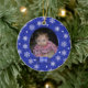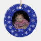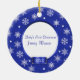 Adorable round ornament done in pretty blue brocade with snowflakes and polka dots. A blue satin looking name plate sits on the bottom. Personalize text on front and back, and add your own photo. Great Christmas tree ornament you and your child will love for years to come. Makes a sweet baby and grandparents gift too.